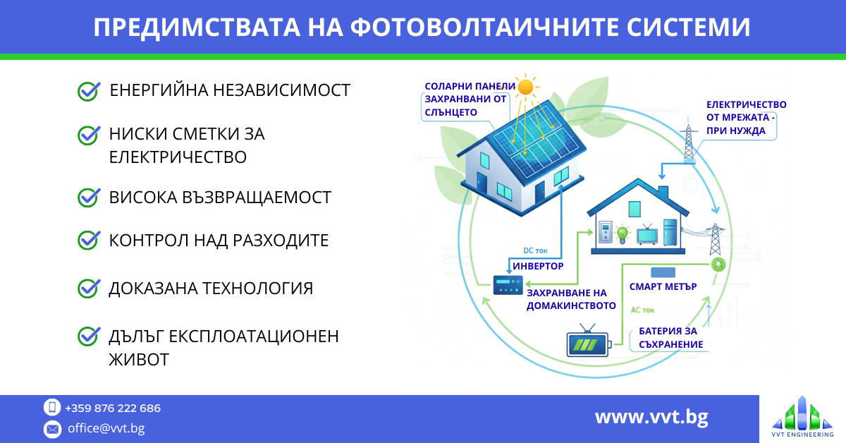 Фотоволтаичните системи не са мода, а доказано и работещо решение. Когато са правилно проектирани и изградени, те носят реални финансови ползи, сигурност и дългосрочна стойност.